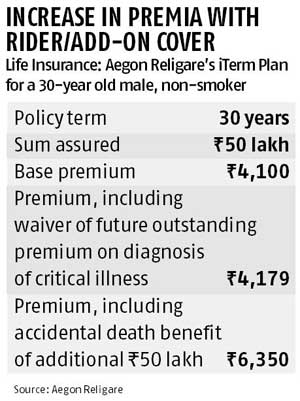 You are online, looking for a term life insurance plan. A pop-up advises you to buy a personal accident add-on cover with it. Or you are looking for a family floater health insurance and debating whether to buy a rider that offers waiver of room rent. While your cost might go up, these riders and add-on covers can, if used effectively, help derive more benefits from your insurance policy.